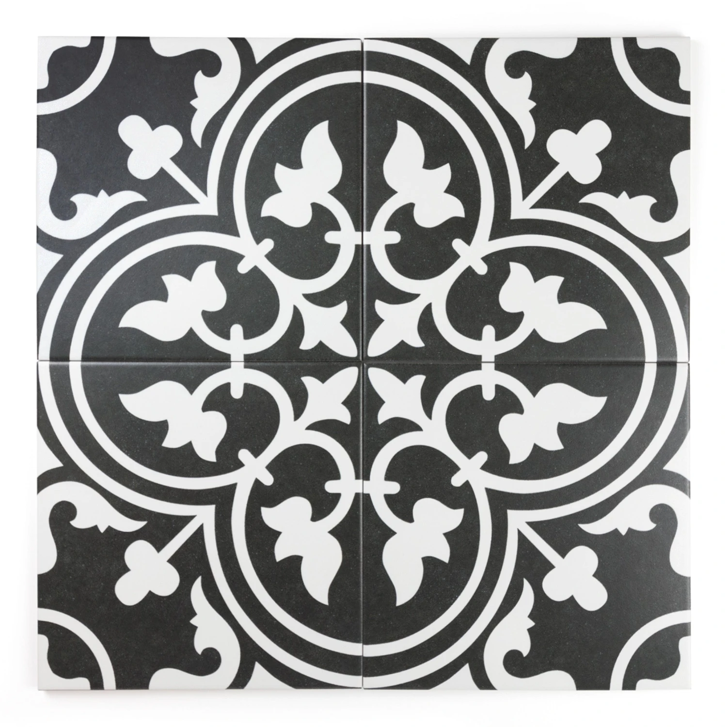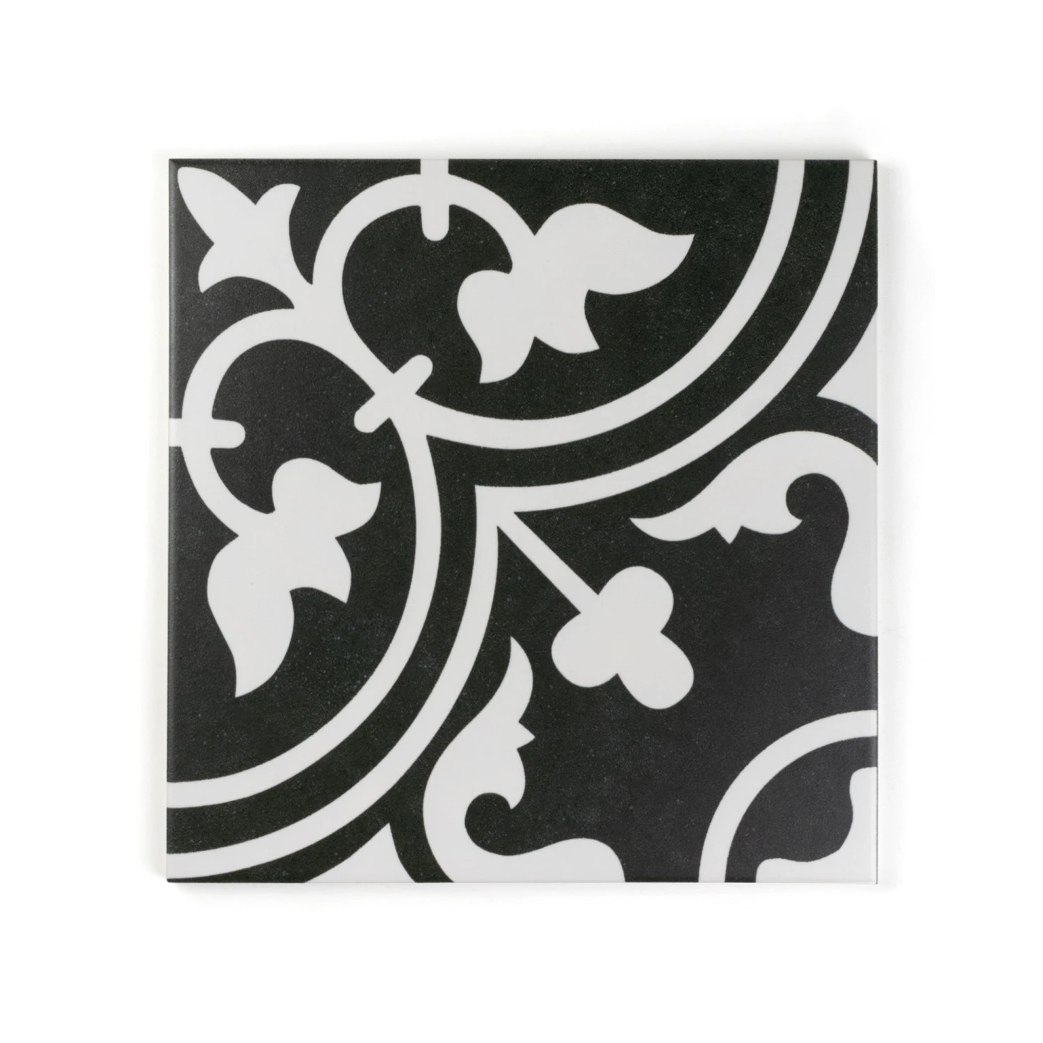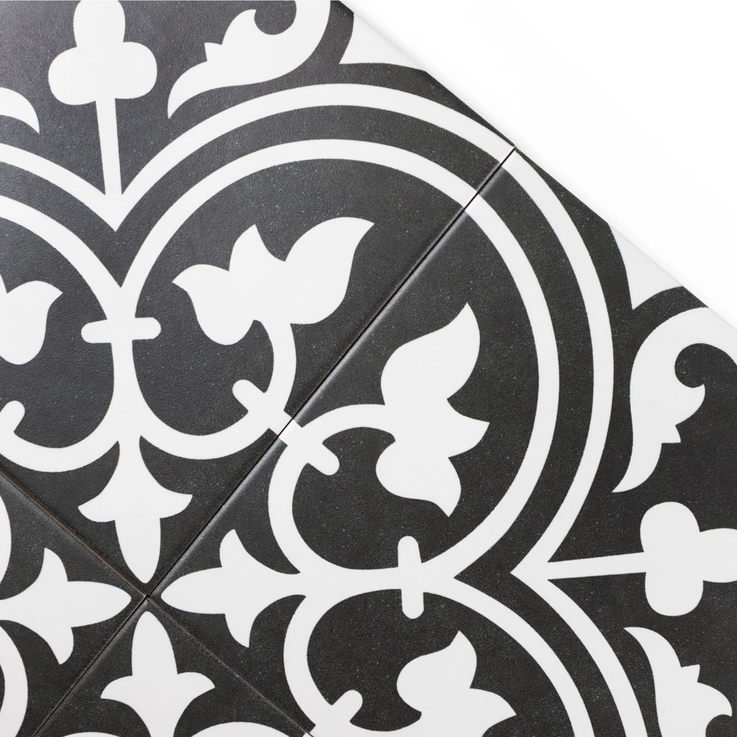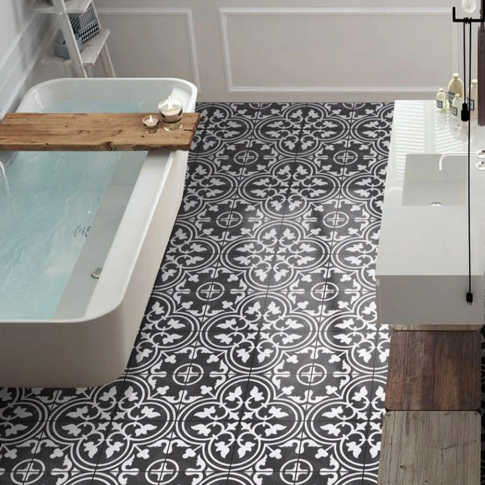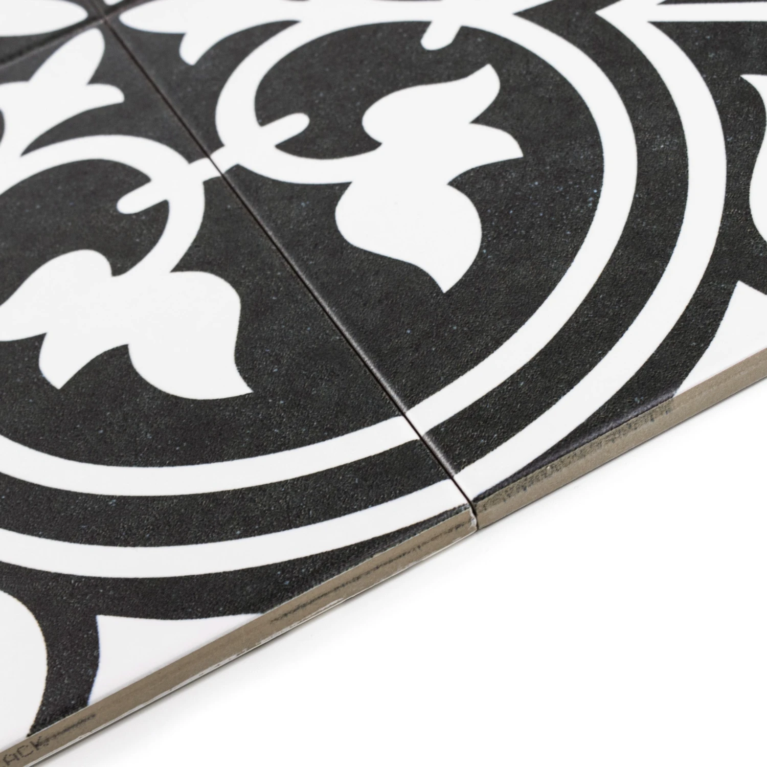 They’re an update on our classy Abbey Decor tile, with the same floral motif but the colours in reverse. And with the white patterning on the black background, we think these make for a more dramatic, eye-catching floor.