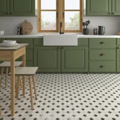 With modern geometric motifs, these tiles offer a more contemporary finish than more traditional patchwork tiles such as Tapestry Blue. Their vibrant azure tones will make a big impact in any room – whether laid over a large expanse of floor or a smaller splash back.