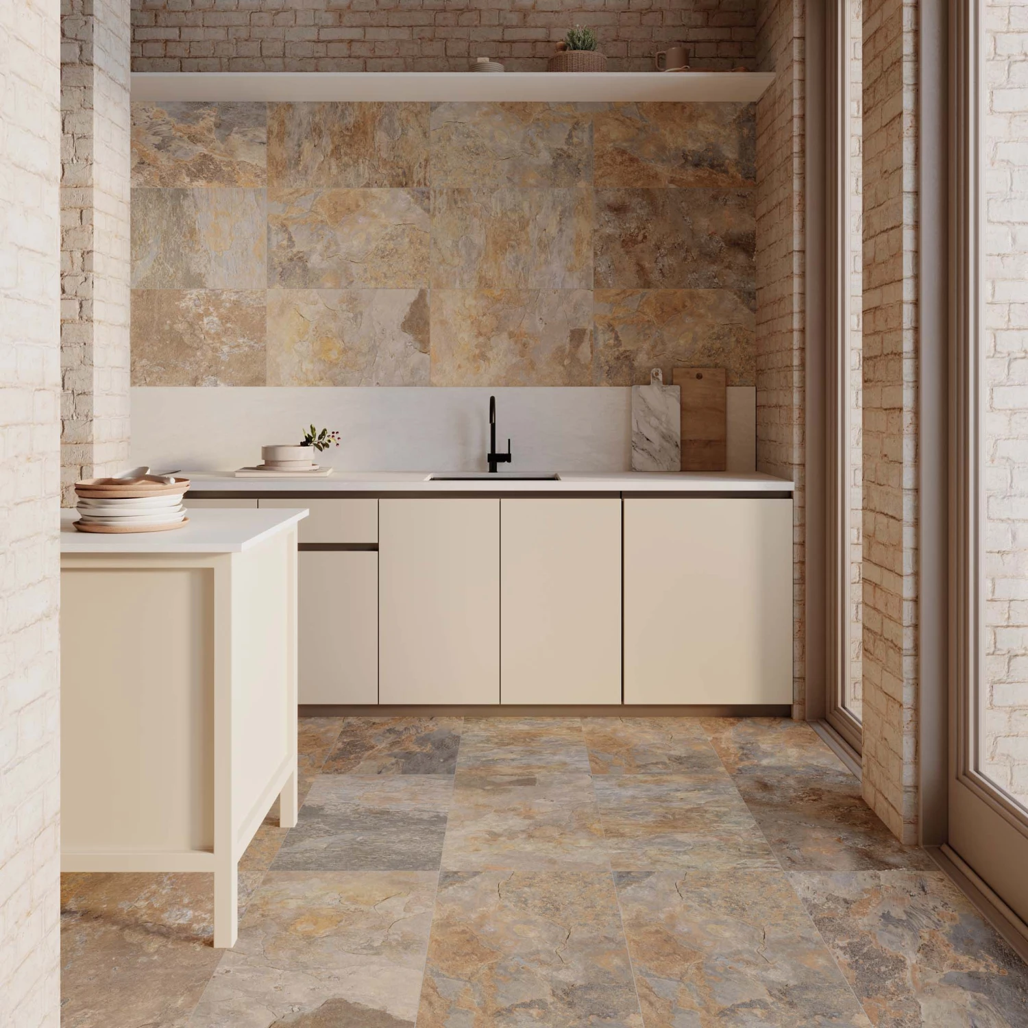With its gently riven surface, you’ll be hard pushed to tell the difference between this high-end designer tile and the natural equivalent. And because it’s made from durable porcelain you don’t need to worry about sealing or special care – that’s a big plus in our eyes!