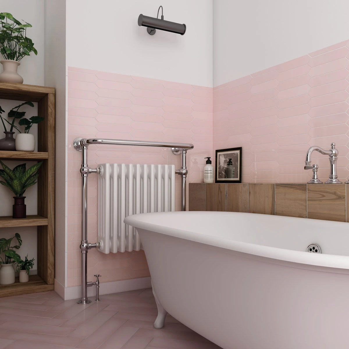 Inherently versatile, these tiles can be laid horizontally, vertically or even at an angle – like a plane at take-off! Create a serene bathroom space by pairing with the matching white tile or alternatively, go all-out for a feature wall that’s rosy, relaxed and rather refined.