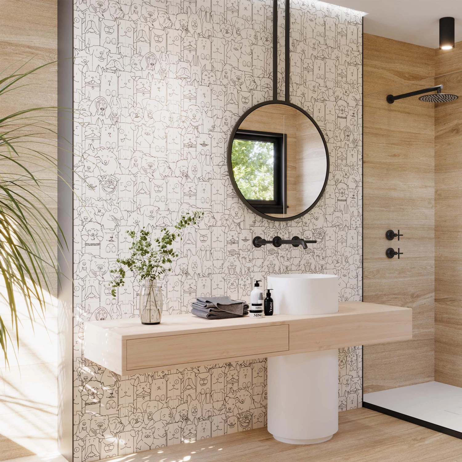 As the name suggests, the tiles feature line drawings of various canines, set against a plain white background. All our favourite friends are featured, so expect to see huskies and pugs alongside labradors and retrievers.