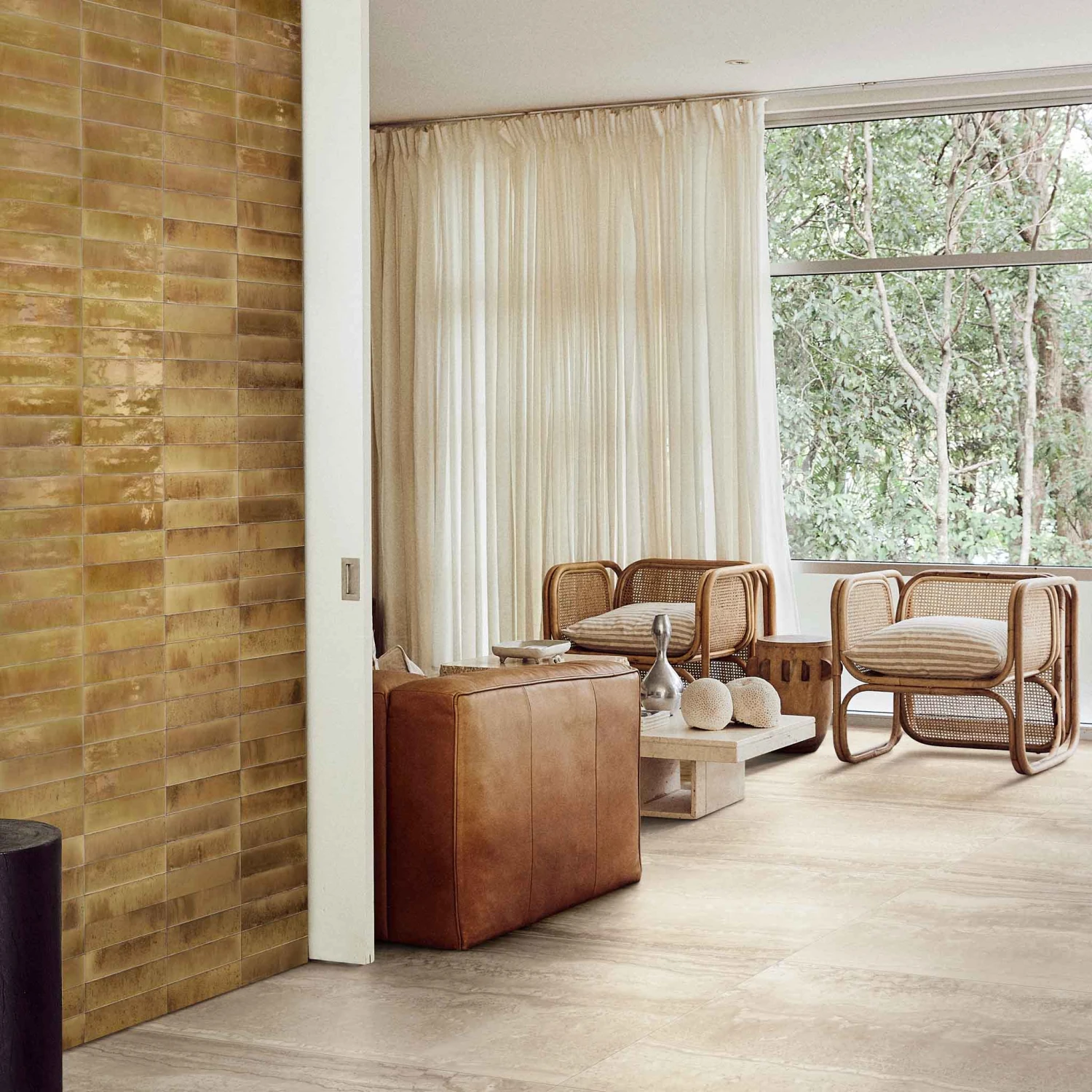 In fact, it’s safe to say our Dwell tiles tick a lot of boxes. They have a fashionable handmade appearance, with interesting imperfections and an uneven surface which give them bags of character. This artisanal quality is enhanced by the rustic ochre glaze. It’s rich and generous, with eye-catching variations in colour and a glossy finish which is beautiful to the touch.