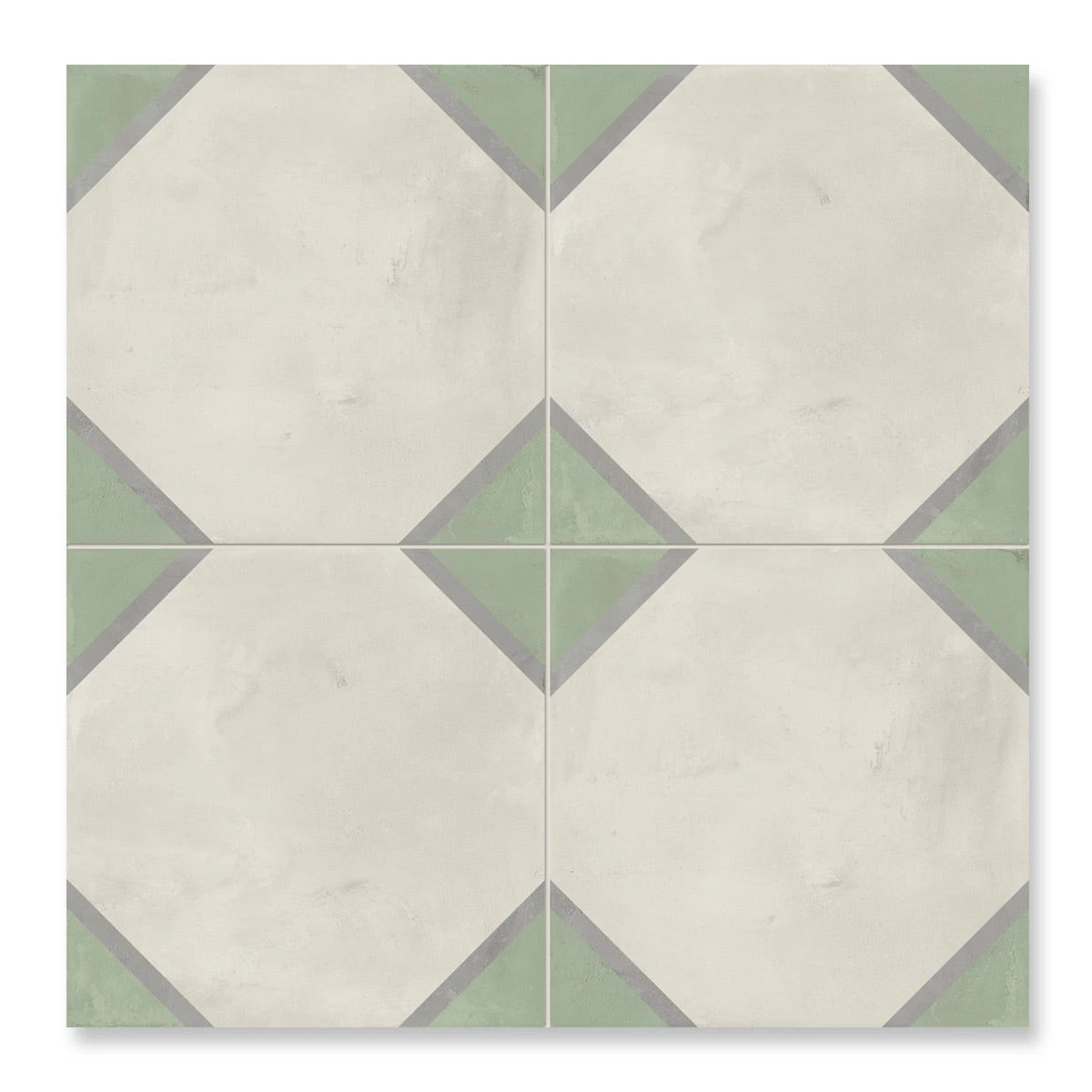 The neutral grey colouring is perfect for modern interiors, while the green corner adds an intriguing geometric detail with a nod to the past.