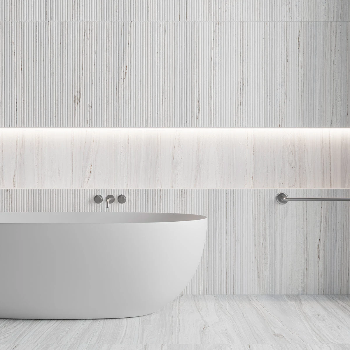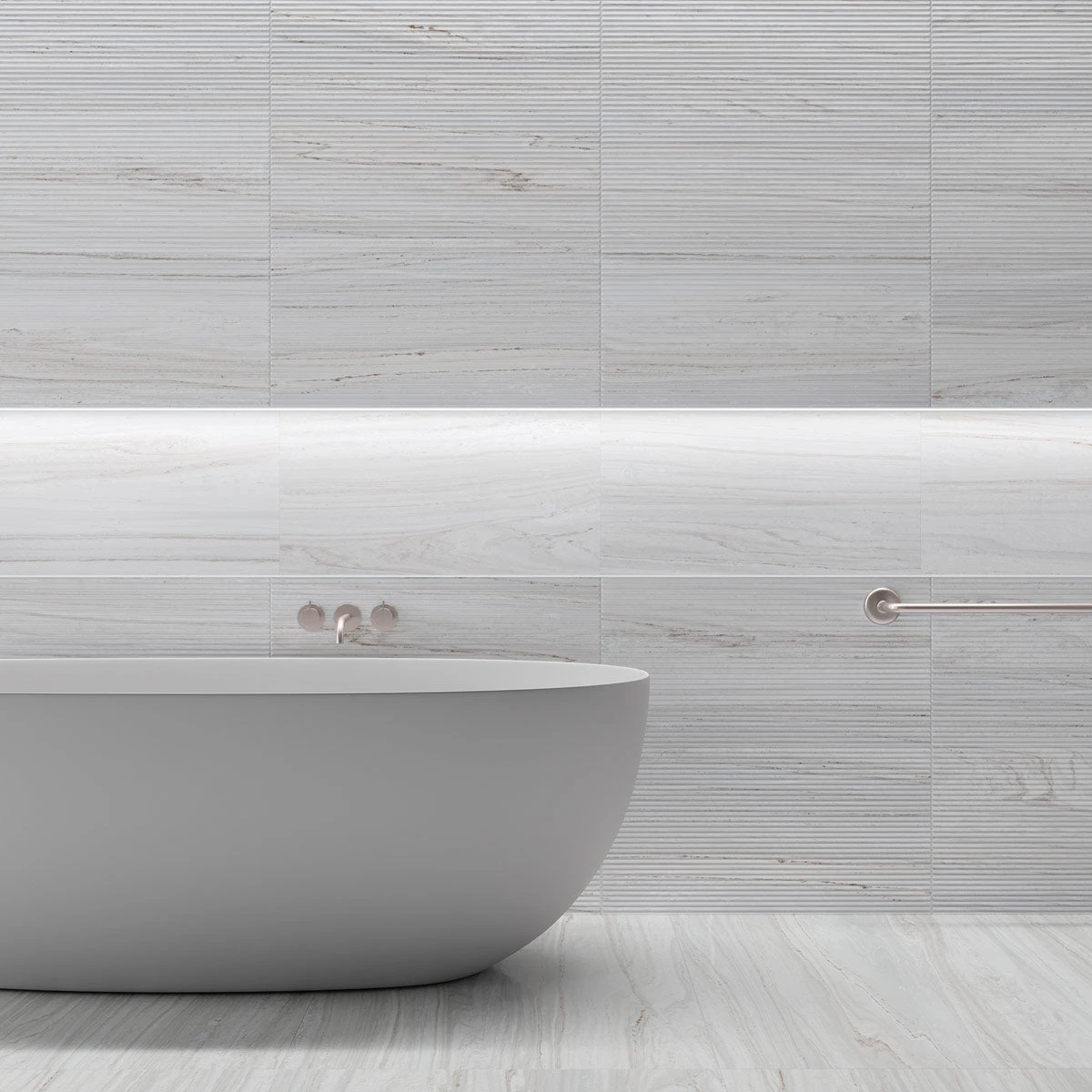 Inspired by the flowing lines of natural Palissandro marble, their ridged surface will structure to your space. The pale grey colouring is well-suited to modern bathrooms, offering an organic backdrop to the clean lines of free-standing baths, minimal brassware and slick wet rooms.
