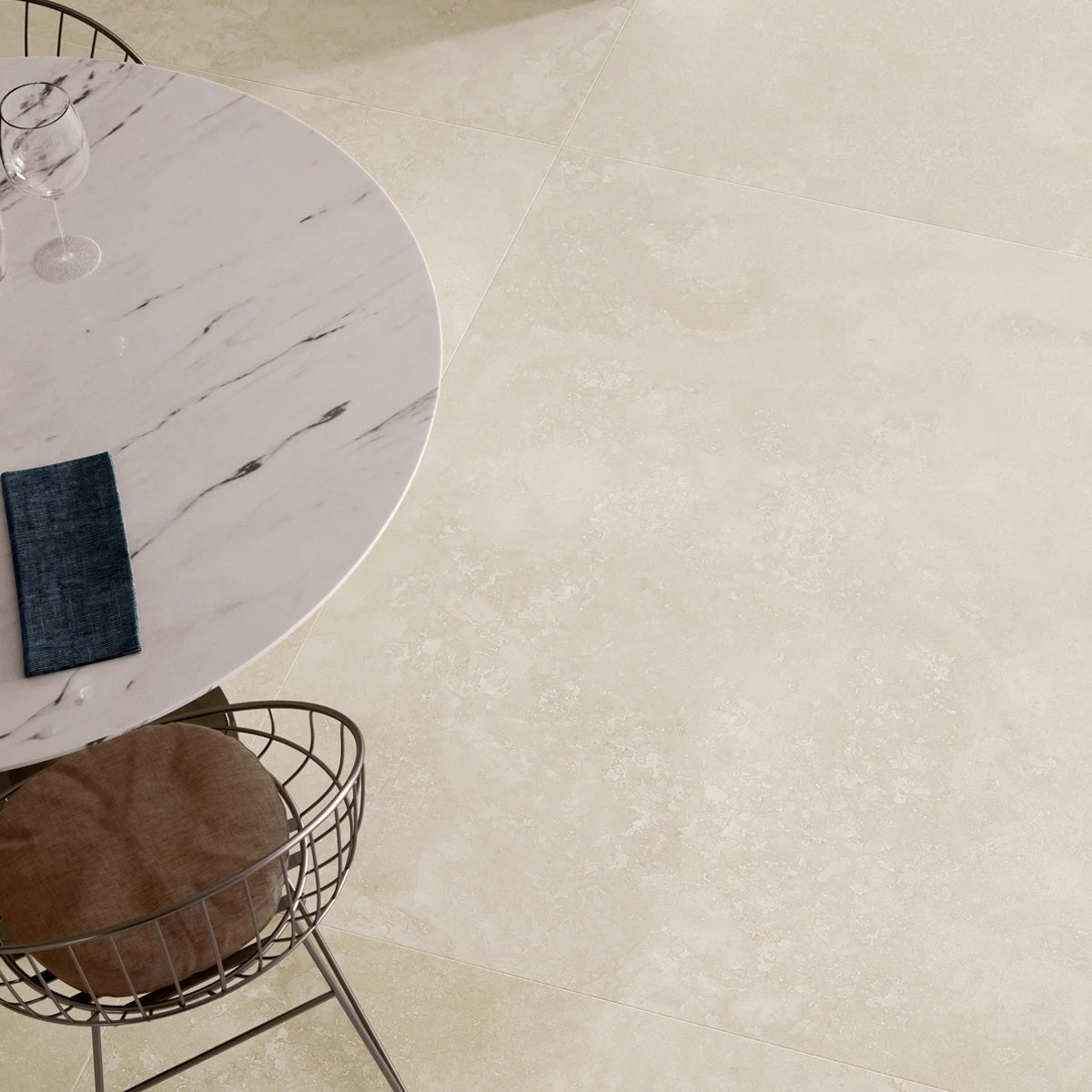 These porcelain tiles are based on ‘Navona’ travertine, an elegant natural stone that’s been mined for over two thousand years.